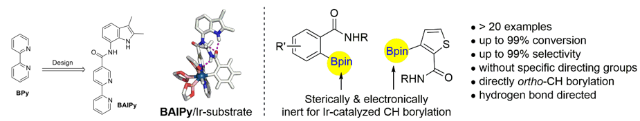Figure 3. The supramolecular substrate orientation approach allows selective C-H borylation, an important new reaction for sustainable synthesis.